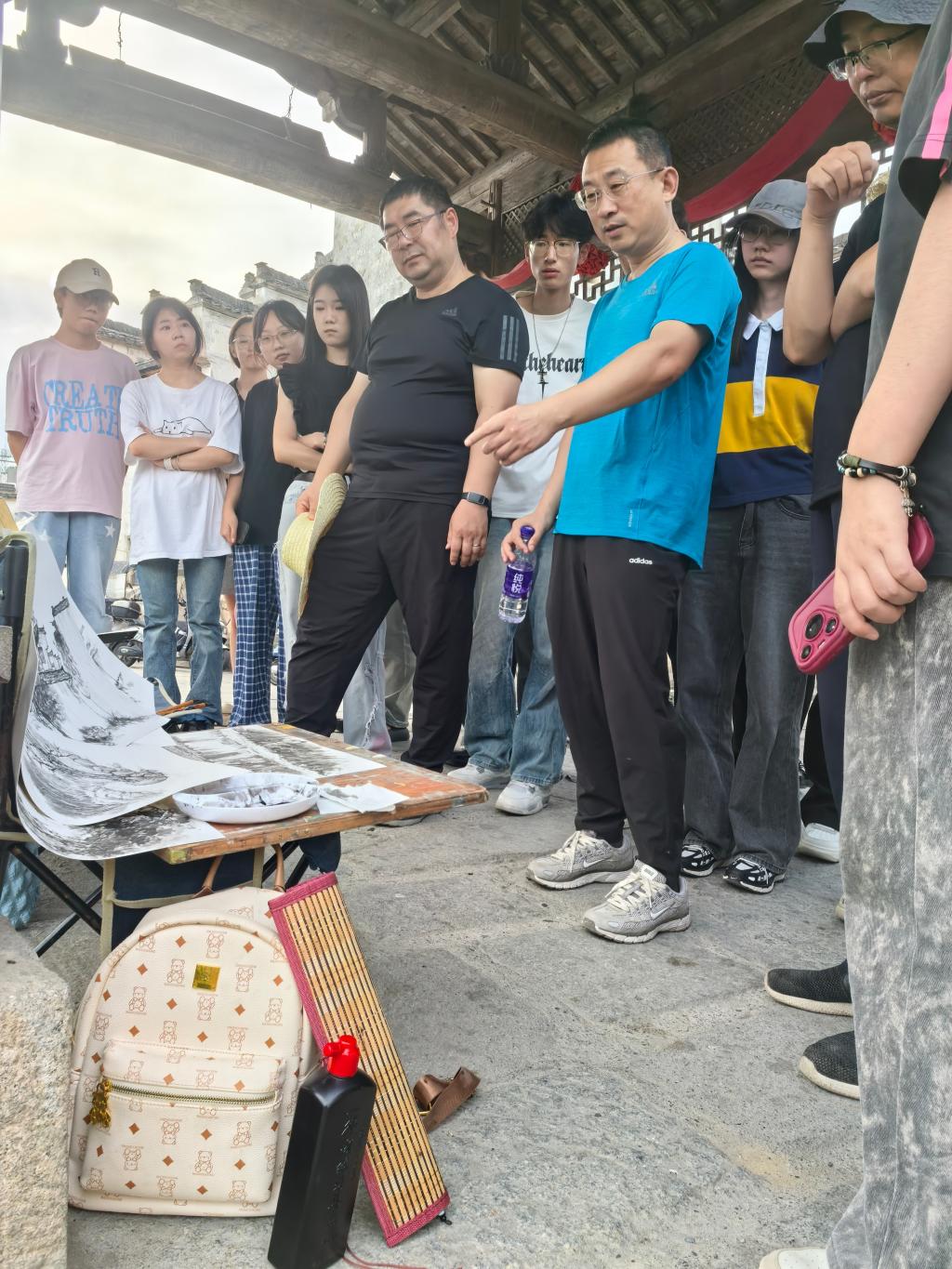 组织多个教学团队,11名专业教师,215名学生,一同前往写生调研基地。各教学团队充分挖掘当地思政教育资源,根据各专业需求,设计了贴合主题的教学内容。在屯溪老街,深入了解皖南地区的革命历史、中共皖南特委的发展历程与革命活动等,探寻红色基因传承密码;在宏村、西递,以古村落传统纹样的文化构建为切入点,讲授中国传统文明基因的现代阐释;在屏山,以“传统文化与乡村振兴”为方向,探寻优秀传统文化赋能乡村振兴的路径;在徽州文化博物馆,通过解读馆藏文物,讲述徽州地区的历史变迁和文化传承,引导学生感受文脉传承的深厚底蕴。