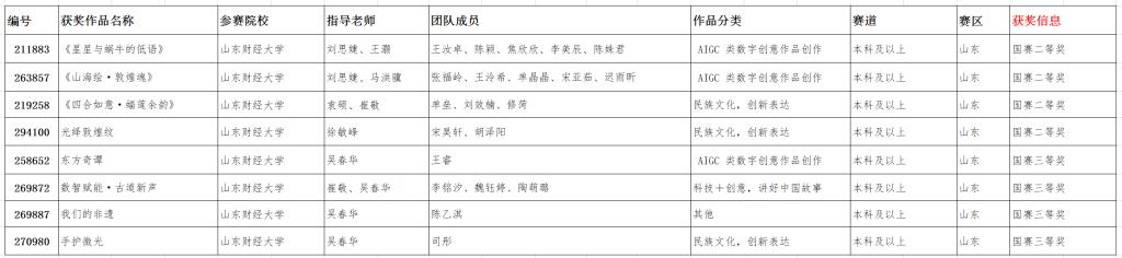 共8支队伍进入全国总决赛。经过师生的共同努力,最终获得国家二等奖4项、三等奖4项的成绩。具体获奖名单如下: